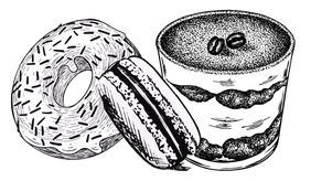 Naast onze warme desserten kunnen we ook koude desserten aanbieden zoals tiramisu, chocomouse, maar ook donuts en macarons